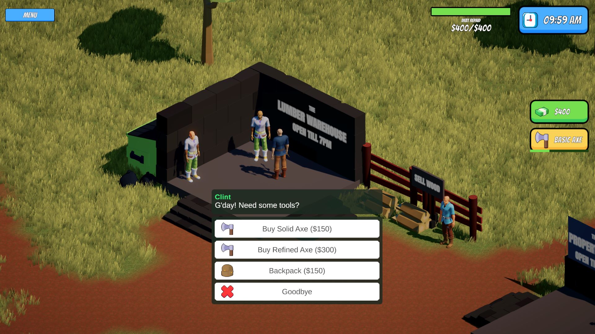 Play as a lumberjack working to repay your growing loan. Chop trees, earn cash, and upgrade your gear to stay ahead. Miss your payments, and you lose it all.